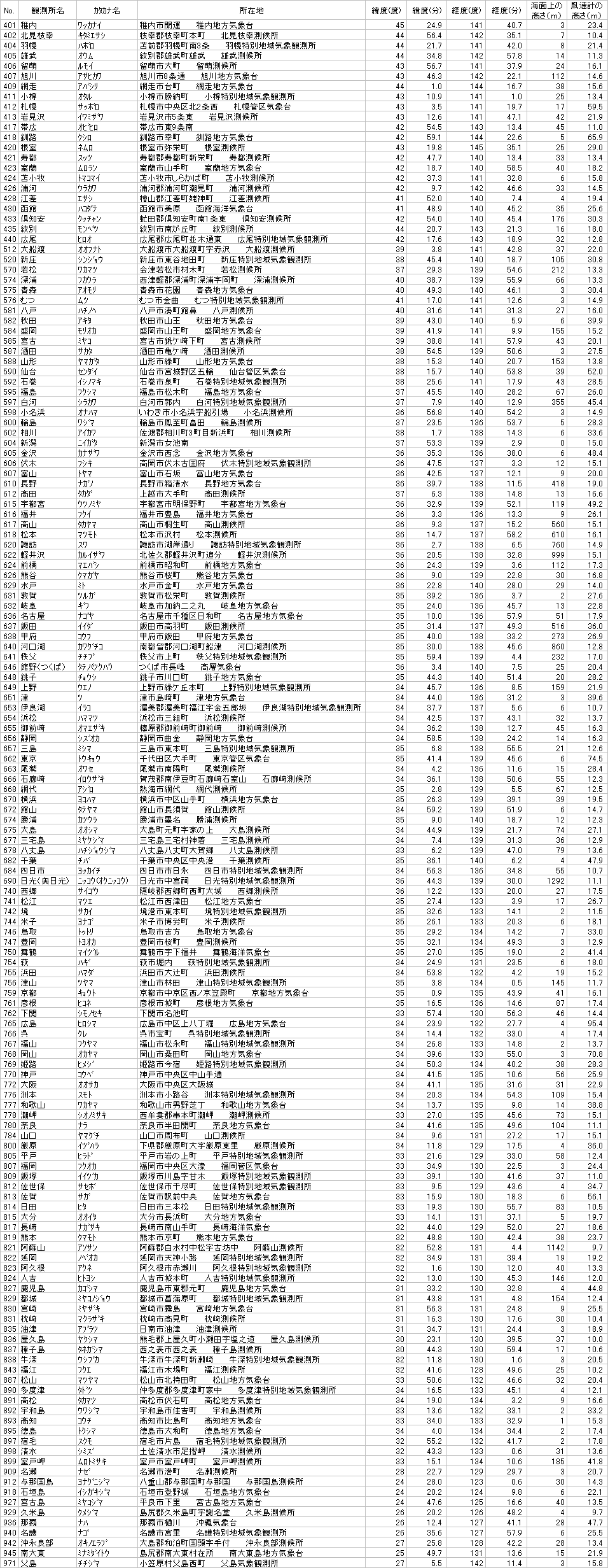 気象官署の位置情報