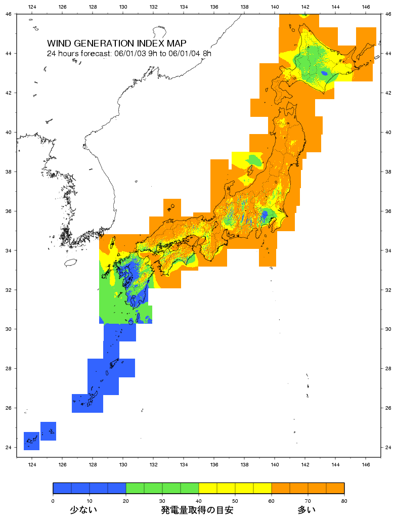 風速の予測値はLAWEPS-1次領域モデル(10kmメッシュ)をもとに