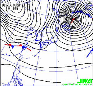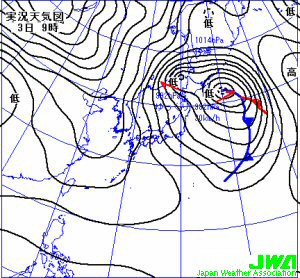 日本では季節風が強まり室蘭で26.2m/s、金沢で25.9m/sの最大瞬間風速を観測した。 |