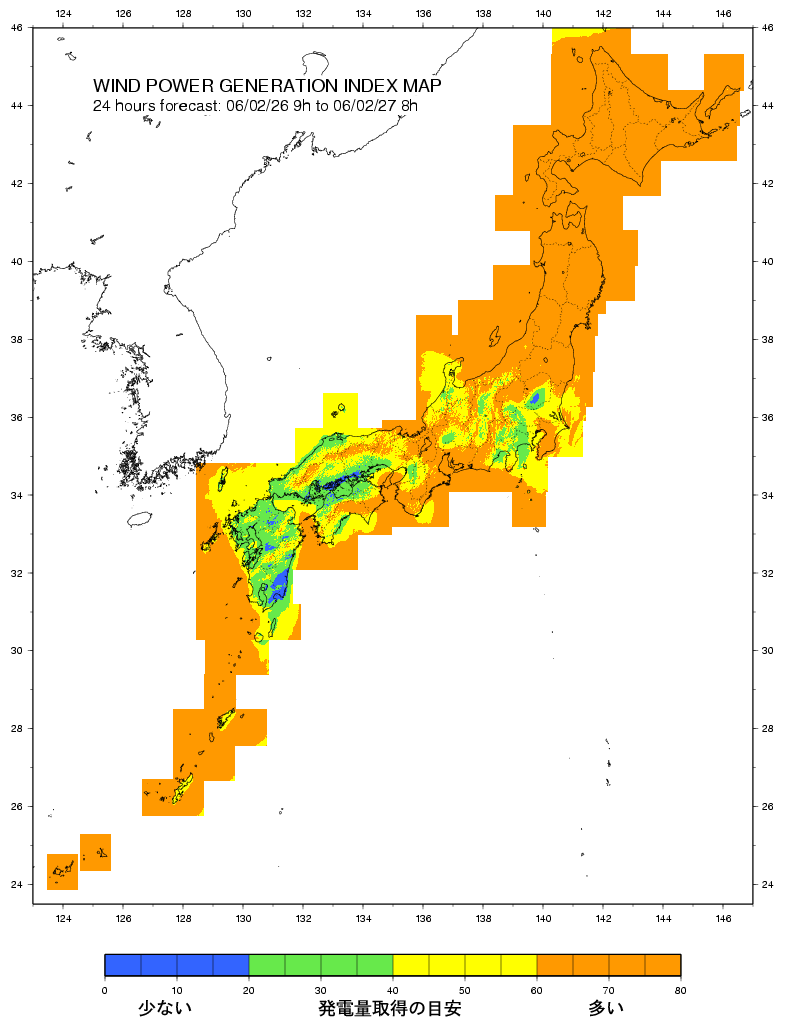風速の予測値はLAWEPS-1次領域モデル(10kmメッシュ)をもとに